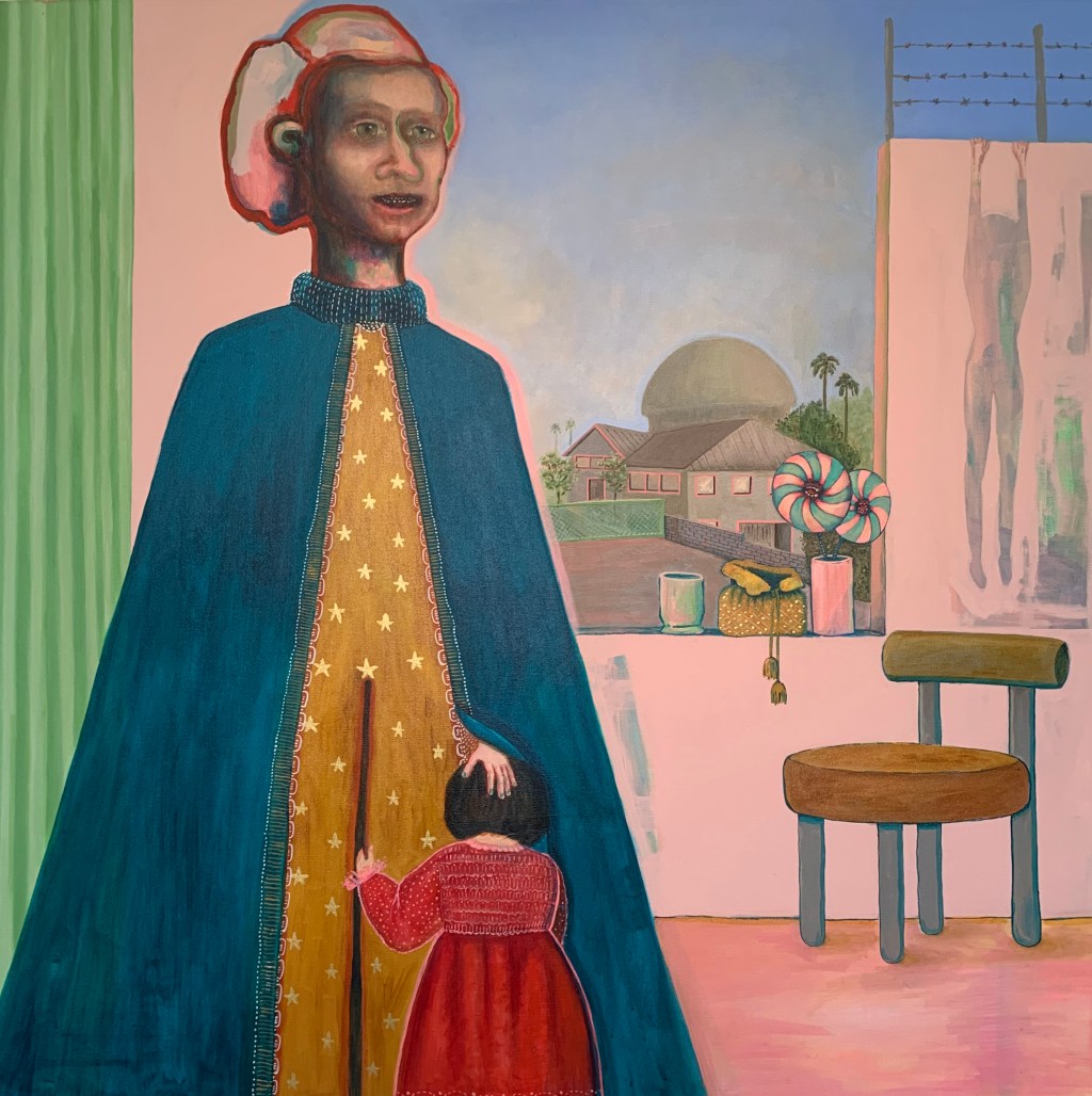 I use Latin American historical elements, zoo-anthropomorphic figures and pop culture references to convey ideas of human behavior, the nature of political power and societal structures, particularly relating to the experiences of female-identifying individuals. The imagery in my work is rooted in actual places and experiences, but those places and experiences grow and evolve into fantastical landscapes and beings that populate a world where immigrant sensibilities and variations of the theme “home can be explored.