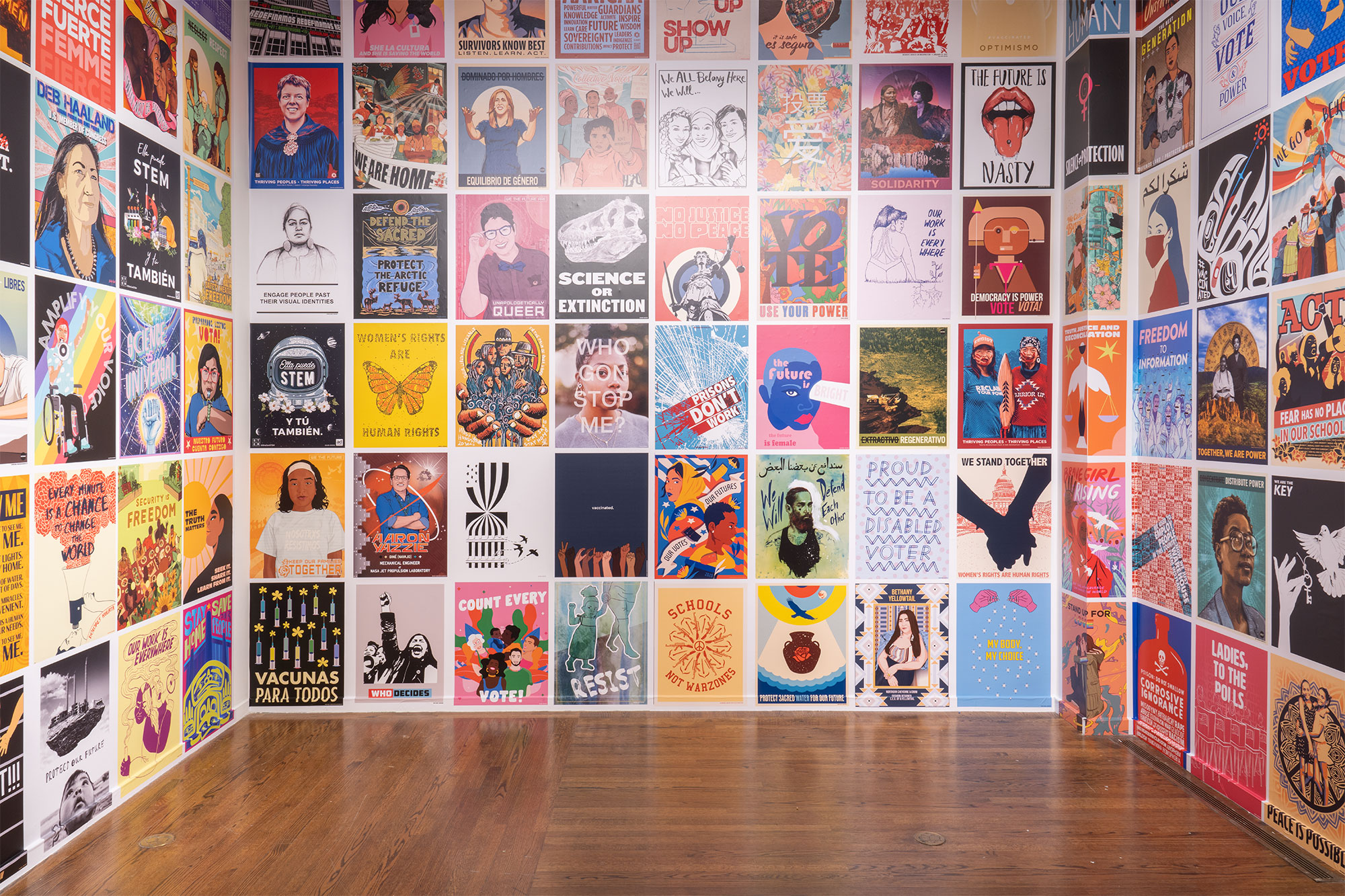 From an open call, a twelve-person curatorial team selected 50 works meant to energize swing-state voters, and inspire them to take to the polls and elect leaders who reflect American majority values. Amplifier printed more than 20,000 posters of the selected work, and distributed them for free to community partner events focused on civic engagement and democracy in over 30 cities and 20 different states nationwide. The images have also been wheat pasted in the streets, and distributed as bus shelter ad takeovers and massive installations. All of the images from the campaign are available for free download on amplifier.org.